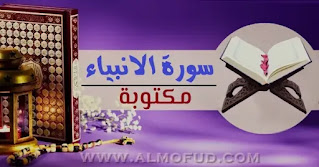 سورة الأنبياء هي سورة مكية تصنف من بين المئين، ترتيبها في القرآن الكريم الواحد و العشرين بعد سورة طه، عدد آياتها 112 آية و عدد كلماتها 1174 كلمة، وعدد حروفها 4925 حرفا، سُمِّيت سورة الأنبياء بهذا الاسم لورود أسماء معظم الأنبياء والرسل، و من مميزات سورة الأنبياء أن بها كنوز و درر أدعية الأنبياء واستجابة الله تعالى لدعائهم.